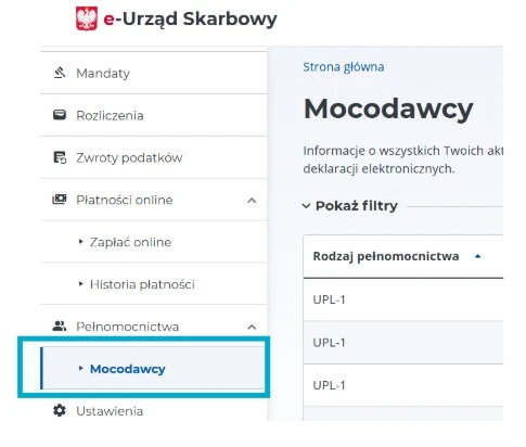 Aby sprawdzić status pełnomocnictwa, wystarczy zalogować się na stronie: https://www.podatki.gov.pl/e-urzad-skarbowy.